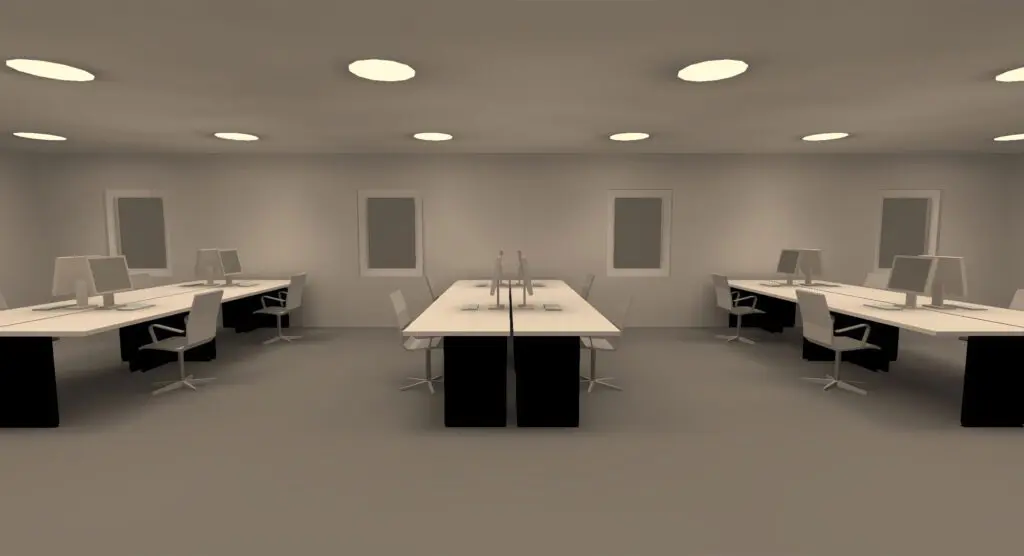 In Großraumbüros müssen sich viele Menschen wohlfühlen und effektiv zusammenarbeiten. Dies erfordert eine gleichmäßige und einheitliche Lichtverteilung, um Schatten und dunkle Ecken zu vermeiden, die visuelles Unbehagen erzeugen und die Konzentration stören können.