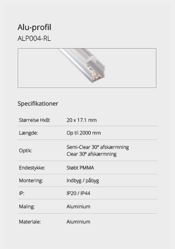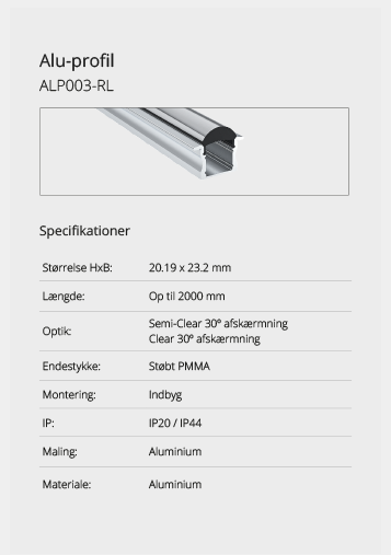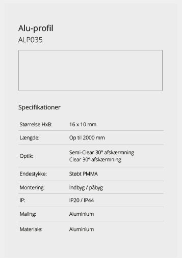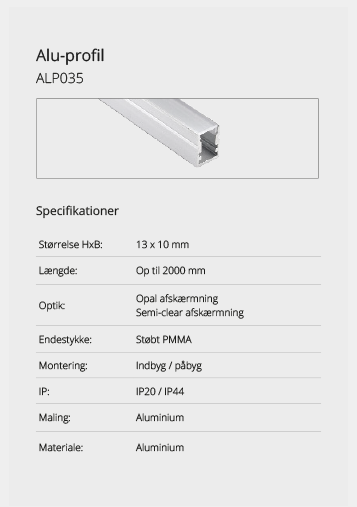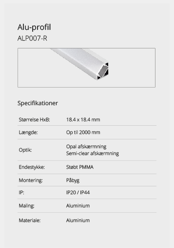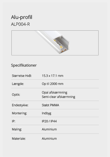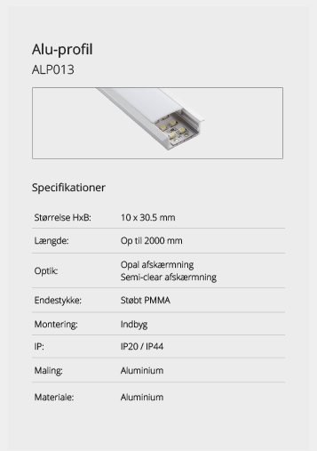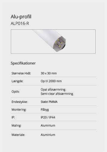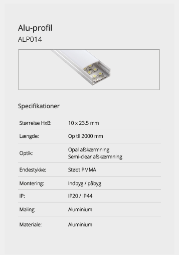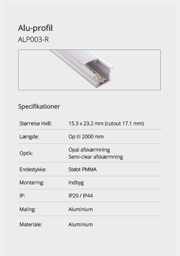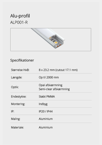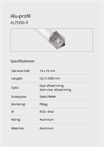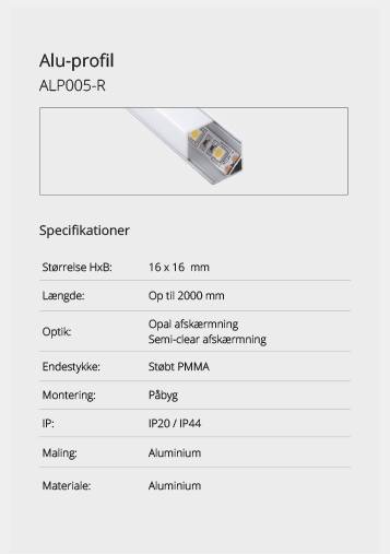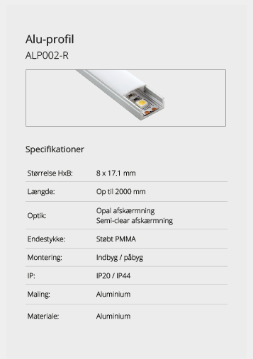 Wir bieten eine große Auswahl an Aluminiumprofilen, die es ermöglichen, Beleuchtung an Orten zu schaffen, an denen kein Platz für herkömmliche Leuchten ist oder wo eine diskrete Lichtquelle gewünscht wird. Mit unseren vielen verschiedenen Aluminiumprofilen können Sie aufregende Lichteffekte schaffen. Lassen Sie sich hier inspirieren. Wenn Sie nicht finden können, was Sie suchen, kontaktieren Sie uns und wir finden eine Lösung.