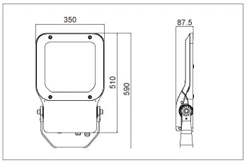 T-Floodlight ist in 2 verschiedenen Größen erhältlich - 450 x 270 x 86,5 mm und 510 x 350 x 87,5 mm und wiegt 6,8 kg bzw. 10,5 kg. Der Strahler ist aus Aluminium LM6 und gehärtetem Glas gefertigt. Dichtheitsklasse IP66. Stoßfest bis zu IK09. AC 220-240. T-Floodlight ist standardmäßig in RAL7022 oder RAL9005 erhältlich.