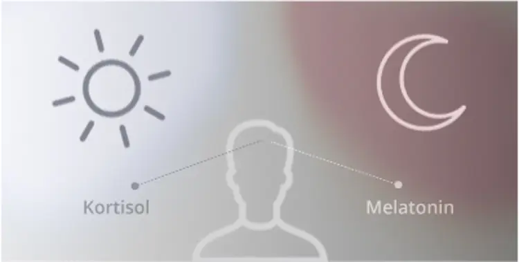 Die Hormonproduktion des Gehirns für das Stresshormon Cortisol und die Schlafhormone Serotonin und Melatonin wird unter anderem durch die Farbtemperatur und Intensität des Lichts reguliert.