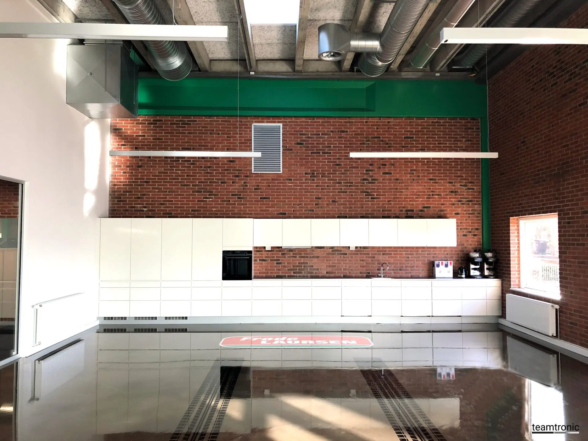 Z-line 75-78 ist in den großen und offenen Büroumgebungen des Gebäudes, in Besprechungsräumen, Fluren und in der Kantine/Küche installiert. Alle Linear-Profile wurden mit Tageslicht- und Bewegungssensor - EasyAir - geliefert.