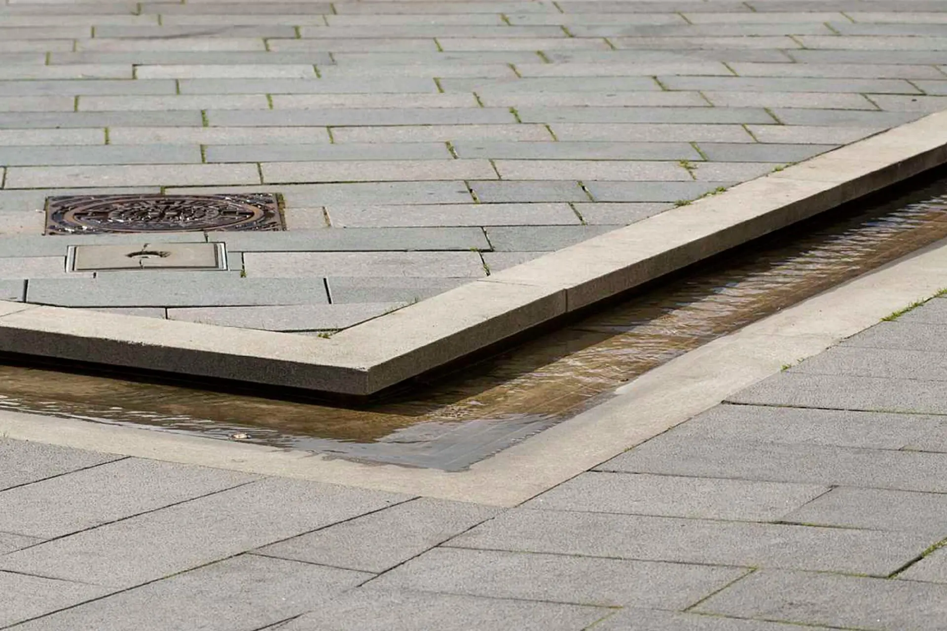 Bei Einbruch der Dunkelheit werden die Lichter in der Wasserrinne zur gleichen Zeit wie die Straßenbeleuchtung der Stadt eingeschaltet. Die Beleuchtung der Wasserrinne schafft eine gemütliche und sichere Atmosphäre und trägt auch dazu bei, einen einzigartigen und stimmungsvollen Eindruck des Stadtplatzes zu vermitteln.
