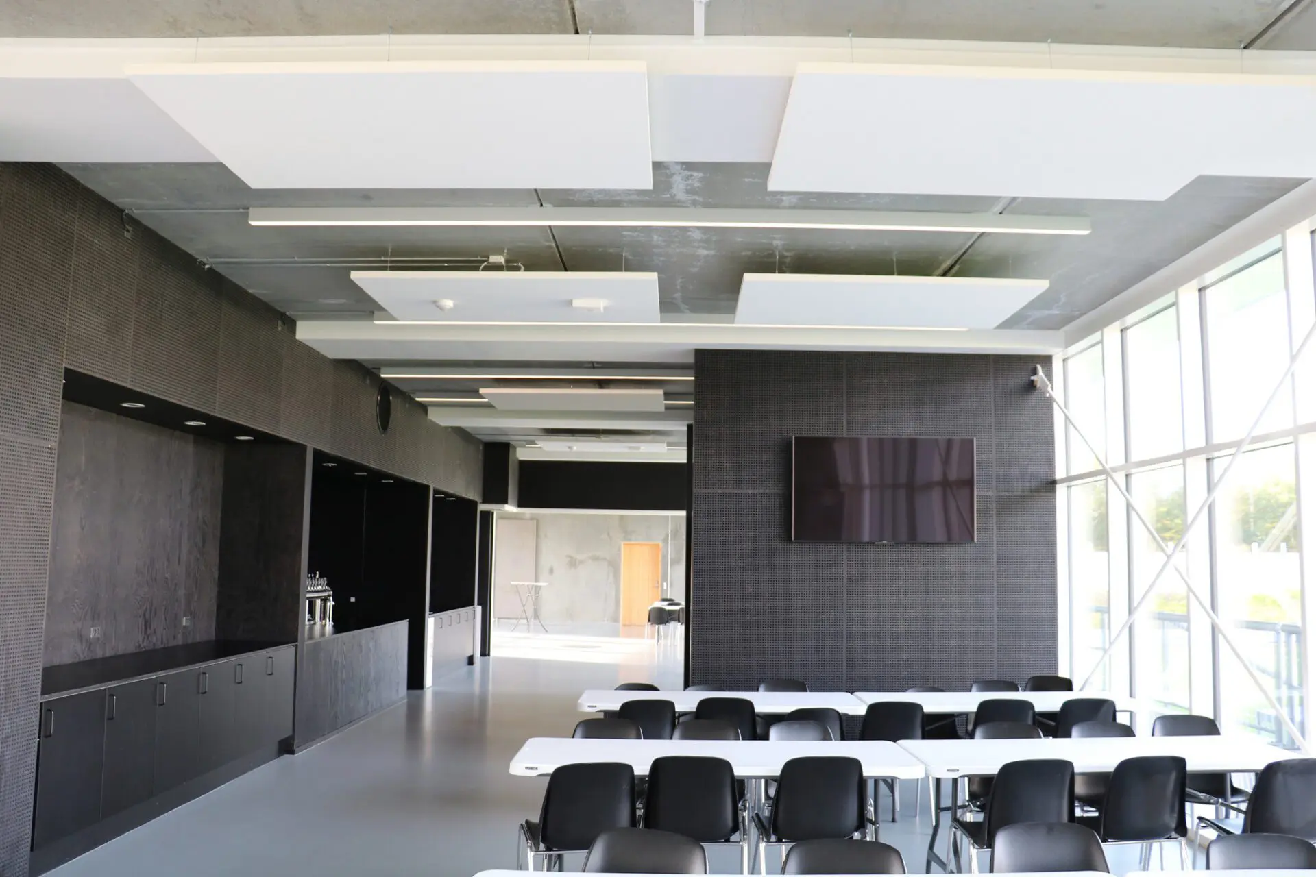 Für die Beleuchtung von Lounge-Bereichen, Bars, Gemeinschaftsräumen und mehr haben wir auch unsere Z-line Suspender 53.8-80 Leuchte und T-Silvereye geliefert. Z-line Suspender 53.8-80 ist eine geradlinige Leuchte mit minimalistischem Design und durchgehendem Lichtband, die schlicht und unauffällig im Raum wirkt. Unsere Leuchte T-Silvereye wird vor allem als Akzentbeleuchtung eingesetzt, die in ausgewählten Bereichen die ideale Atmosphäre schafft.