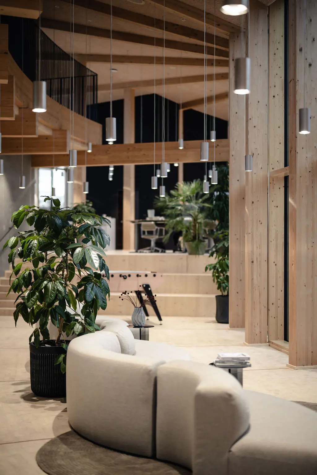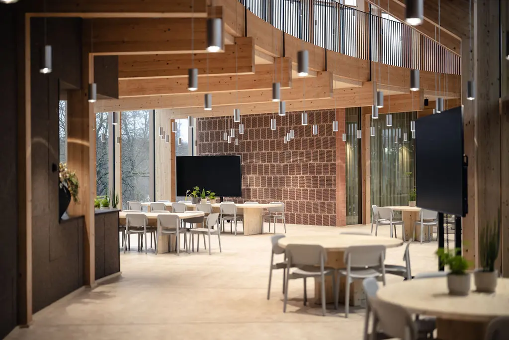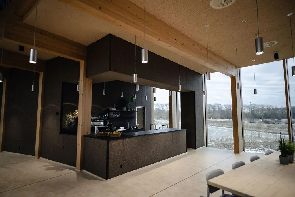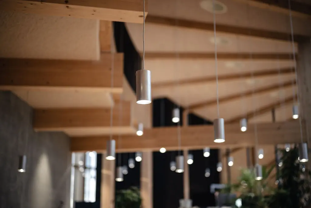 Bygningens arkitektoniske ambition har haft stor betydning for, hvordan projektets proces har udformet sig. Ambitionen har været at skabe et nutidigt domicil med et materialevalg, hvor konstruktioner og overflader står tydeligt frem, og som fremmer sundhed og velvære. Derfor er belysningen ikke tilføjet som et efterfølgende lag, men integreret som et formgivende element, der understøtter bygningens geometri og materialeholdning. Indvendigt er der arbejdet med Teamtronics T-Modular serie i både nedhængte og påbyggede varianter. Armaturernes udtryk er kundetilpasset til projektet. De er udført i rå aluminium, hvis udtryk spiller sammen med naturmaterialerne og bidrager til det samlede udtryk. Mulighederne for specialiserede tilpasninger har givet armaturerne en samhørighed med resten af projektet fra de første streger og har, kombineret med tidlig involvering, bidraget til byggeriets dynamik og cirkulære udtryk.