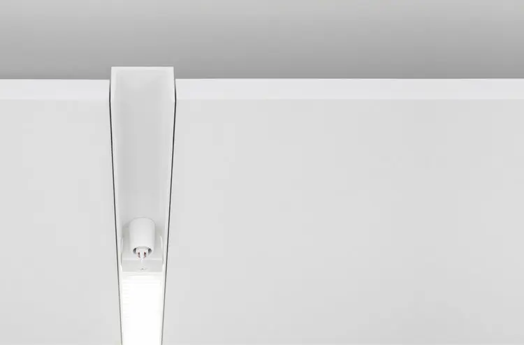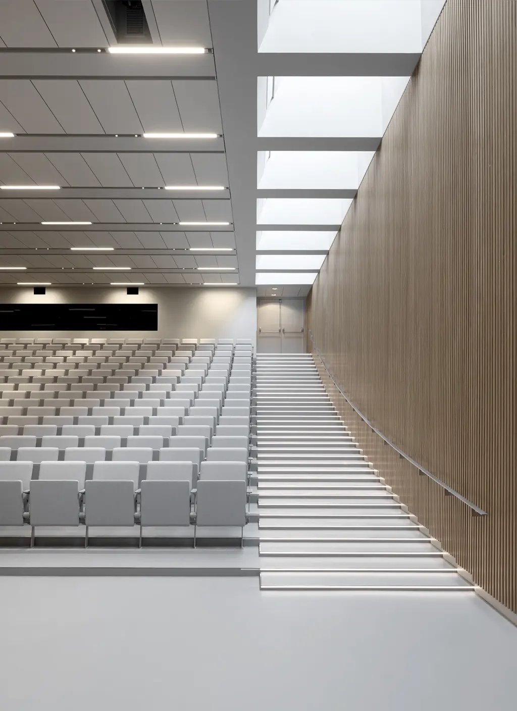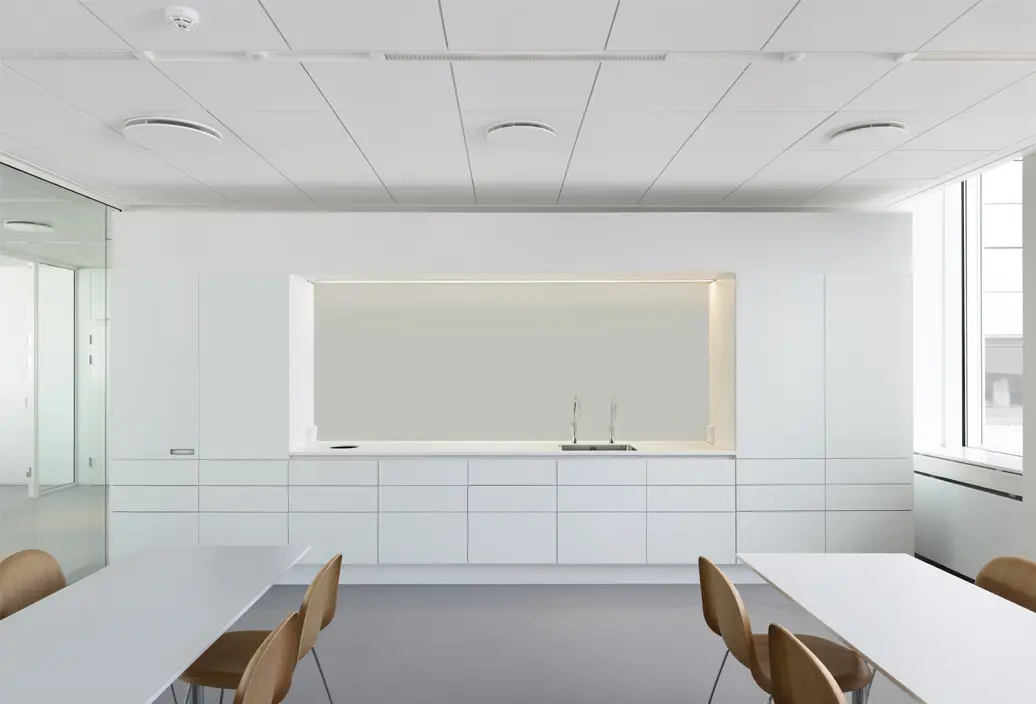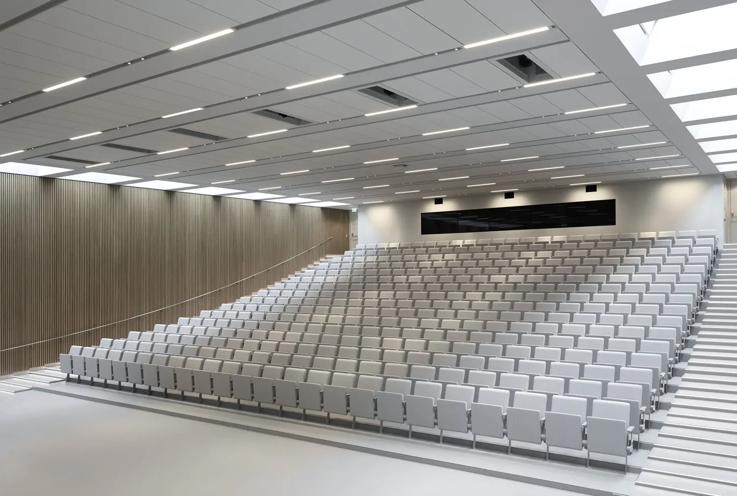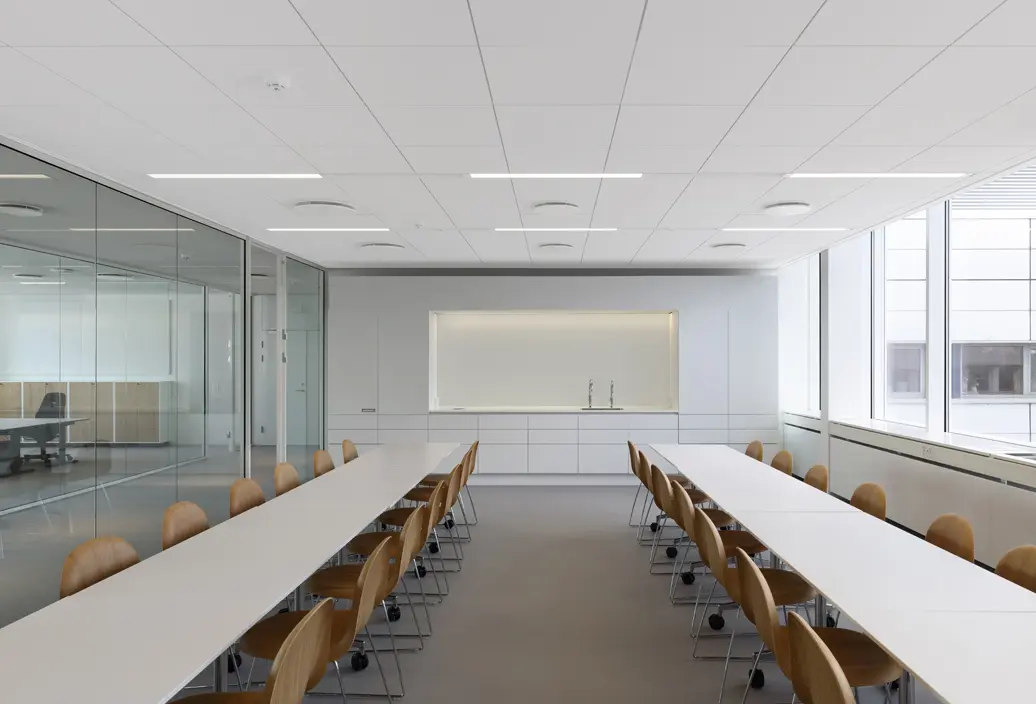 Erweiterung des Forschungslabors in Måløv mit Schwerpunkt auf stilvollem und funktionellem Design, das optimale Arbeitsbedingungen für die Forscher schafft. Auch die reinigungsfreundliche Innenraumgestaltung stand im Mittelpunkt, und die Wahl der richtigen Materialien war von entscheidender Bedeutung. Um eine stilvolle Beleuchtungslösung zu erreichen, die zum architektonischen Ausdruck des Gebäudes passt, wurde Open Lights Extend für den Deckentyp Ecophon Focus DG gewählt. Extend wird mit integrierten Strahlern und Sprinklern geliefert. Gesamtzahl der Leuchten 1.500.
