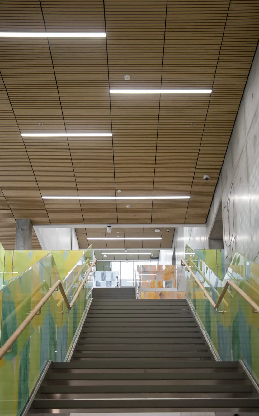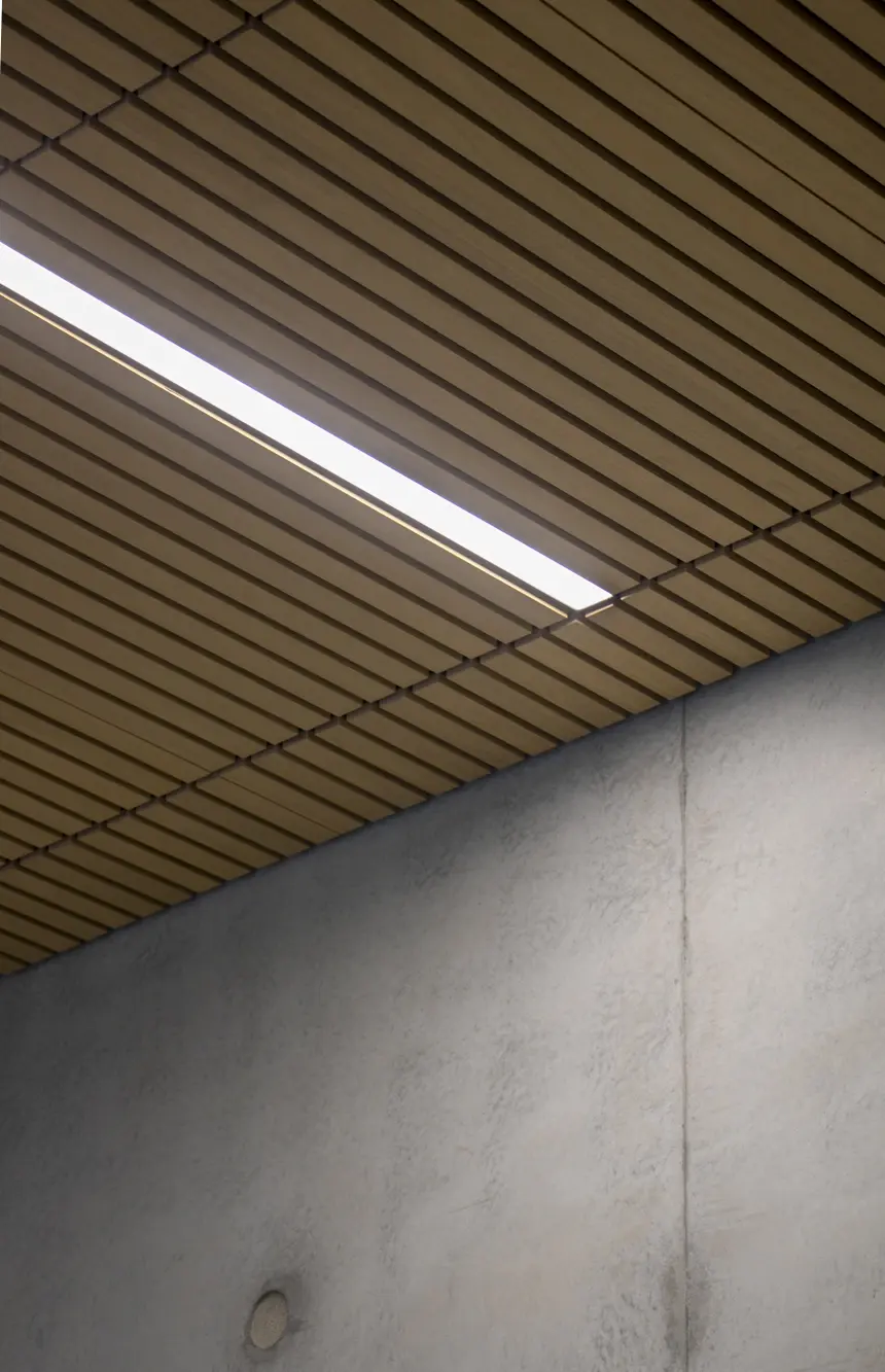 Um eine natürliche Verbindung zwischen dem Foyer des Steno Diabetes Centers und dem Neuen Universitätskrankenhaus Aalborg zu schaffen, wurde ein durchgehendes Linienprofil vorgesehen.