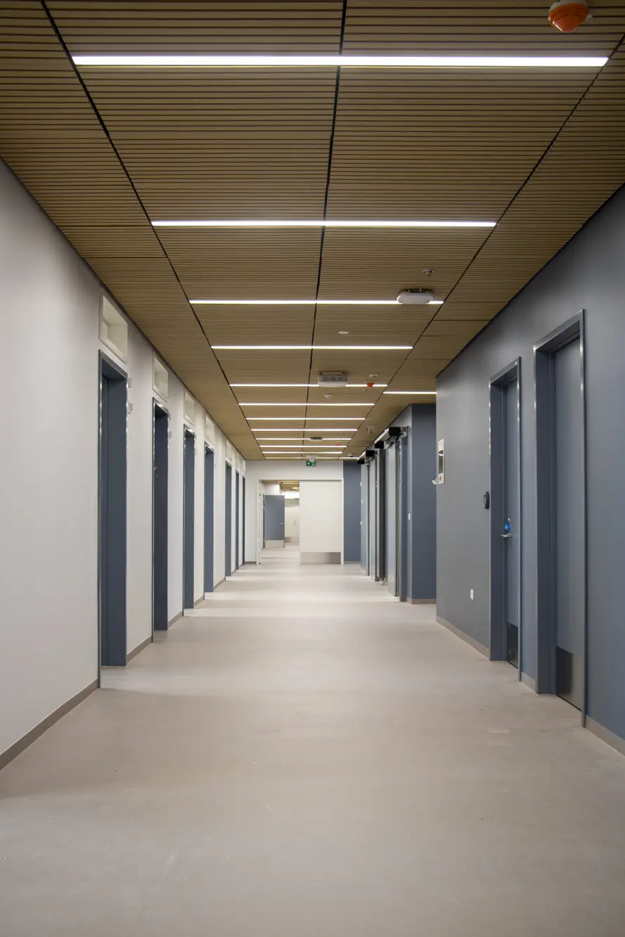 Im Steno-Diabeteszentrum hat Teamtronic die Grundbeleuchtung für die mehr als 7000 m² auf vier Etagen geliefert. Mehr als 550 Linienleuchten wurden im Eingangsbereich des Zentrums, in den Unterrichtsräumen, in den Einrichtungen für das Personal, in den Gemeinschaftsräumen und in anderen Bereichen eingesetzt. Die Linienprofile werden in verschiedenen Längen als Z-Line- und In-Line-Typen sowohl für den Anbau als auch für den Einbau z.B. in die durchgehende Rasterdecke geliefert. Die Grundbeleuchtung besteht außerdem aus mehr als 200 Downlights in verschiedenen Größen und 400 Einbauplatten.