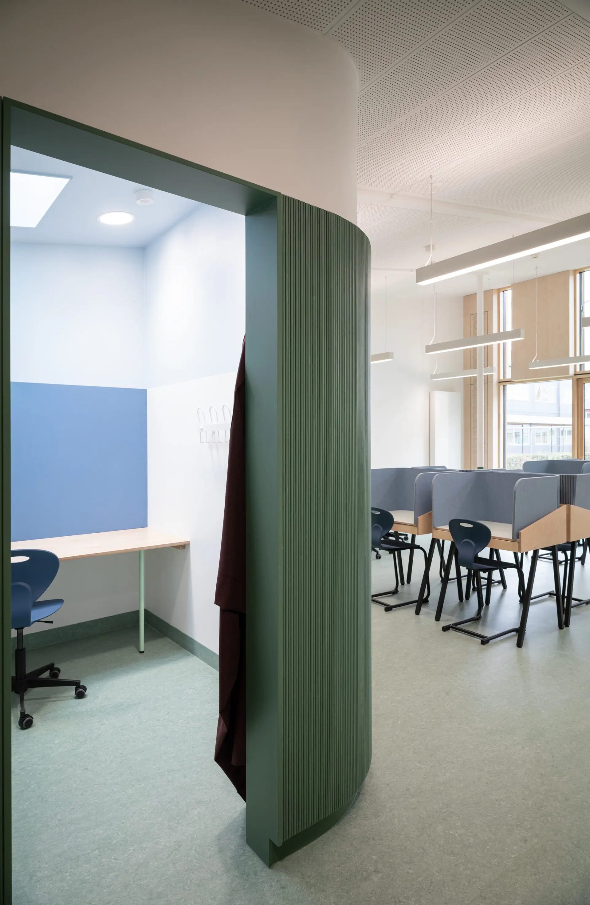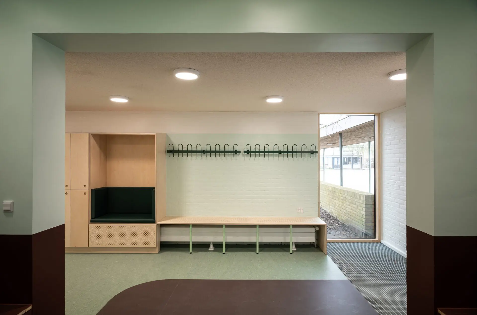 Besonderes Augenmerk wurde auf die Wiederbelebung der bestehenden Gebäude und die Stärkung von Unterricht, Bewegung und Inklusion an der Schule gelegt. Die Umgestaltung hat die dunklen und abgelegenen Räume ohne Tageslicht in lebendige, helle und kreative Bereiche verwandelt.