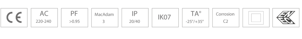 Lebenserwartung des LED-Treibers 100.000 Stunden. Die Leuchte ist nach CIE EN 60598 1-2 und einschließlich EN550 15/EMC zertifiziert.