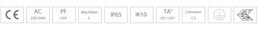 Lebenserwartung des LED-Treibers >70.000 Stunden. Die Leuchte ist nach CIE EN 60598 1-2 und einschließlich EN550 15/EMC zertifiziert.
