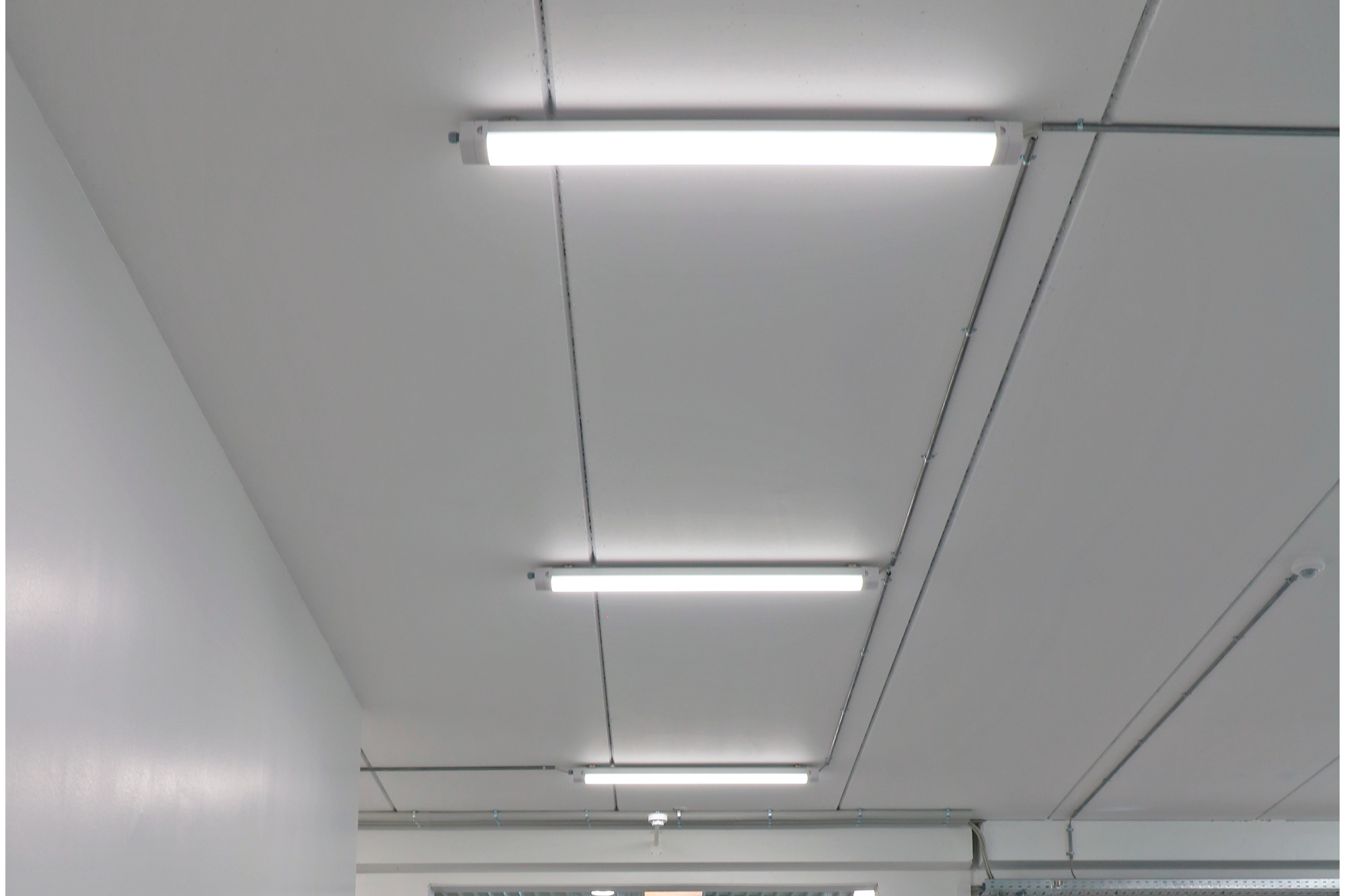 Leuchte für die Anbaumontage an der Decke - auch für die Aufhängung im Seil erhältlich. Für die Installation sind Montagewinkel im Lieferumfang enthalten. Die Leuchte kann direkt oder über eine Durchgangsverdrahtung angeschlossen werden. Der Treiber ist in der Leuchte integriert.