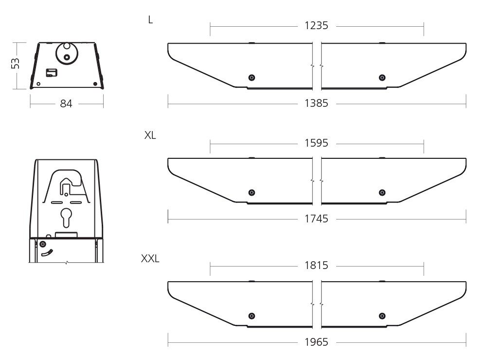 T-Truxian ist in drei verschiedenen Größen erhältlich, 1385 x 84 x 53 mm / 1745 x 84 x 53 mm / 1965 x 84 x 53 mm, und ist aus Stahl gefertigt. Die Leuchte hat eine Dichtheitsklasse von IP20, AC 220-240.