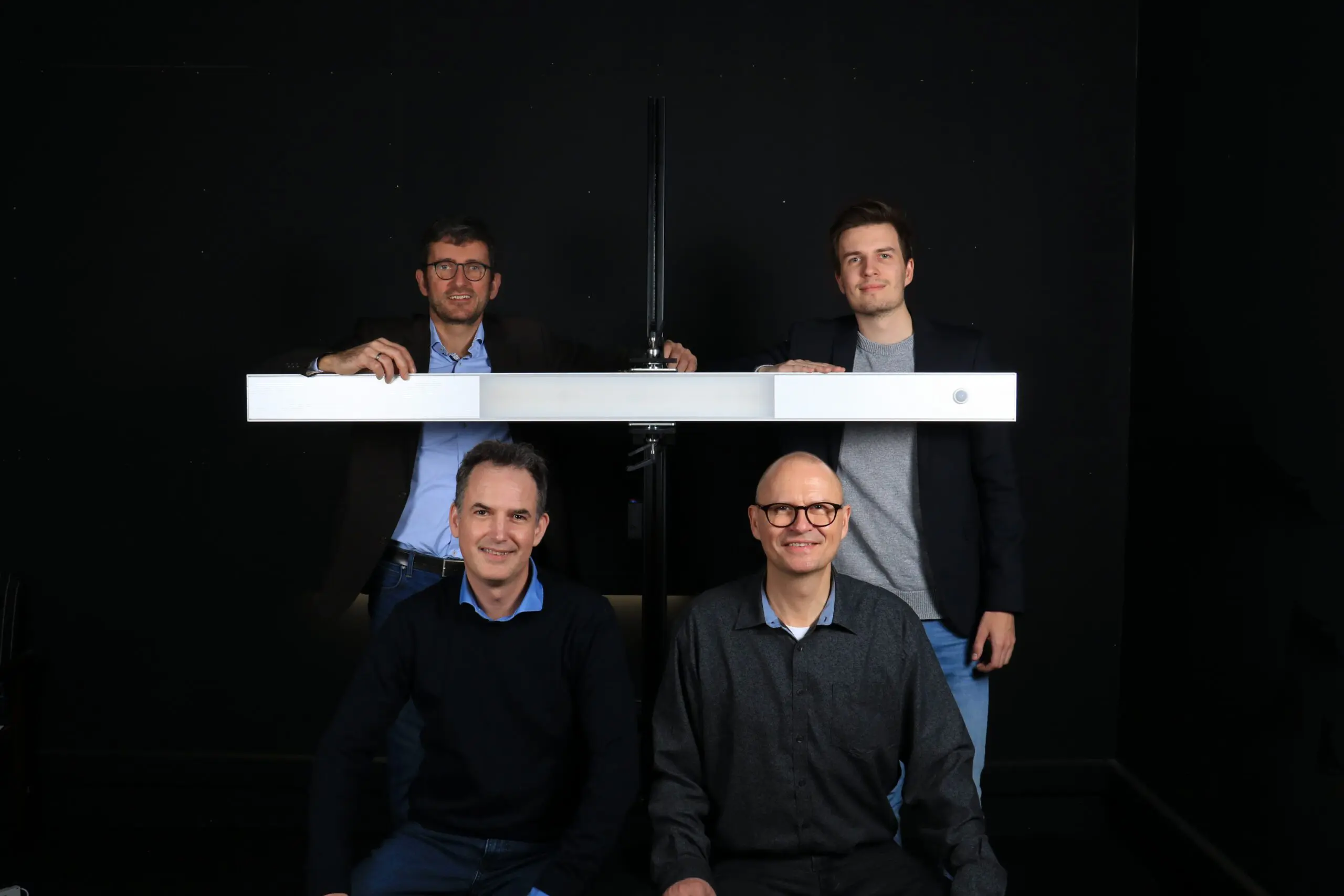 Foto: Jan Klinge (oben links) und Søren Topp (unten links), ehemalige Eigentümer von Open Light Denmark. Karsten Nellemose (oben rechts) Angebots- und Beleuchtungsberater und Poul Nellemose (unten rechts) Geschäftsführer von Teamtronic. PR-Foto - Nanna Eckhoff.