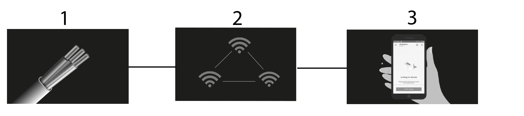 - Verbinden Sie die Leuchten über ein 3-adriges Kabel