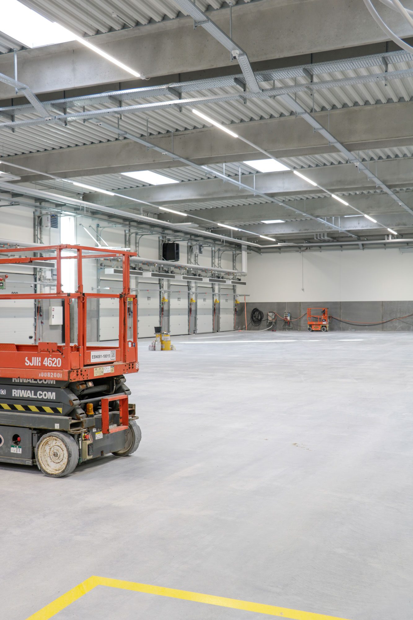 Et byggeri på 10.000 m2 med både administration og distributionshaller stiller store belysningskrav.