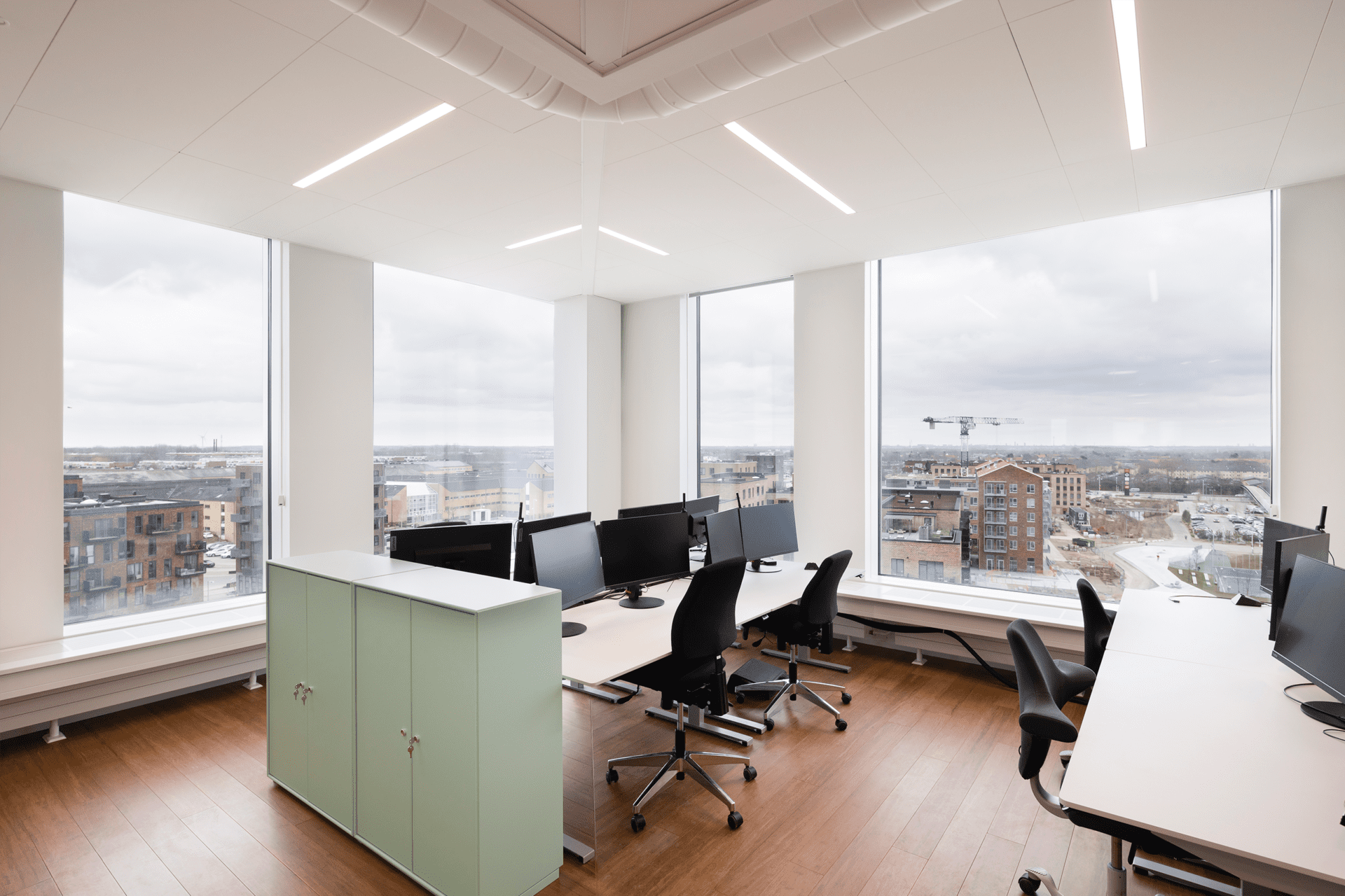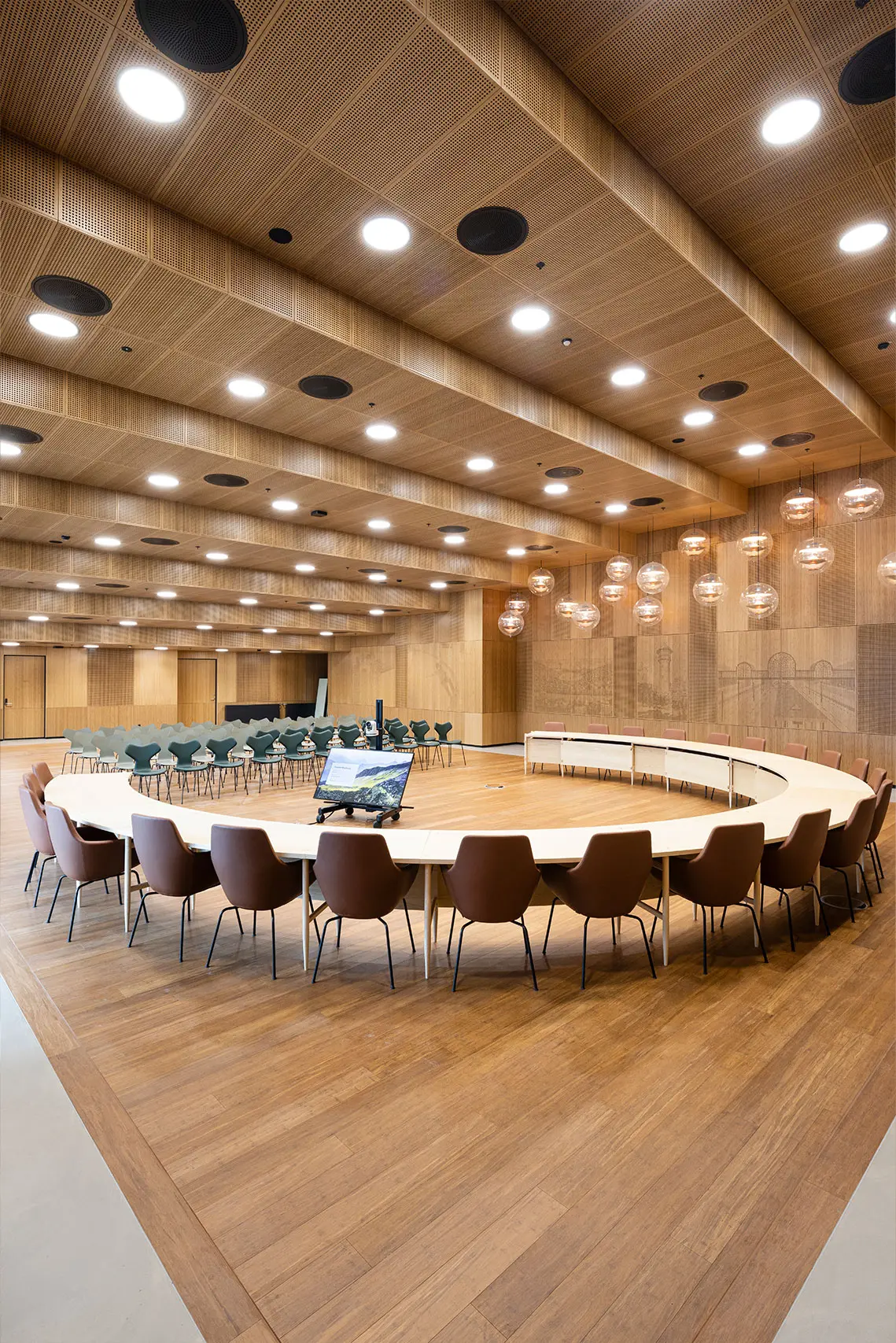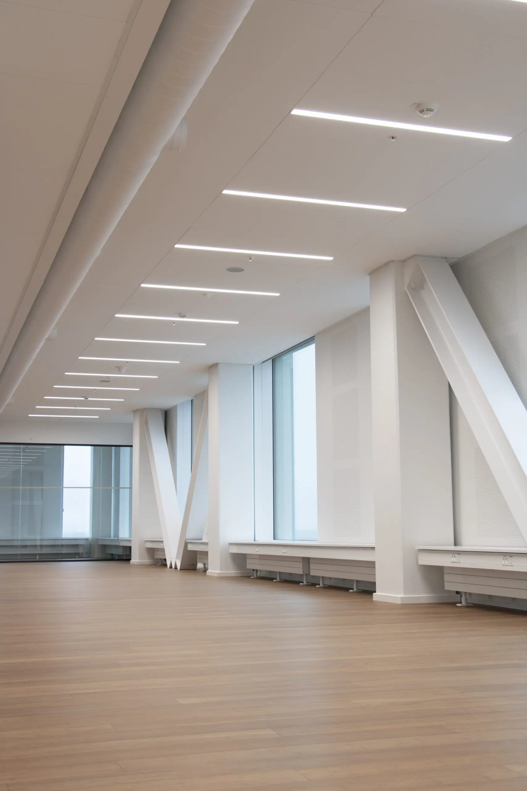 Til projektet har Teamtronic leveret godt 2000 armaturer af typerne T-Hee, T-Blackbird, T-Arche Pro, T-Modular, T-HCA Spot og T-LED, men den primære del af belysningen i byggeriet består af projekttilpassede linjeprofiler. Her er In-line 63-70 indbygningsprofiler i Rockfon T24 X loftsystem med skjulte skinner gennemgående for de store kontor- og mødelokaler i forskellige længder fra 500 mm til 3119 mm. I rådhusets vinkelrette hjørner er der kredset ekstra for detaljerne med specialkonstruerede profiler, og resultatet taler for sig selv.