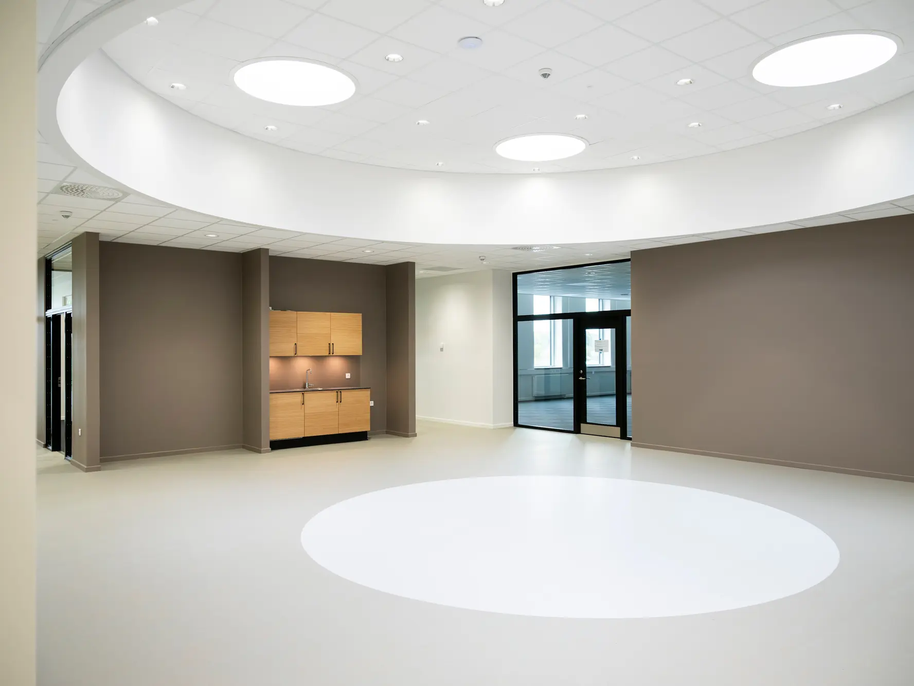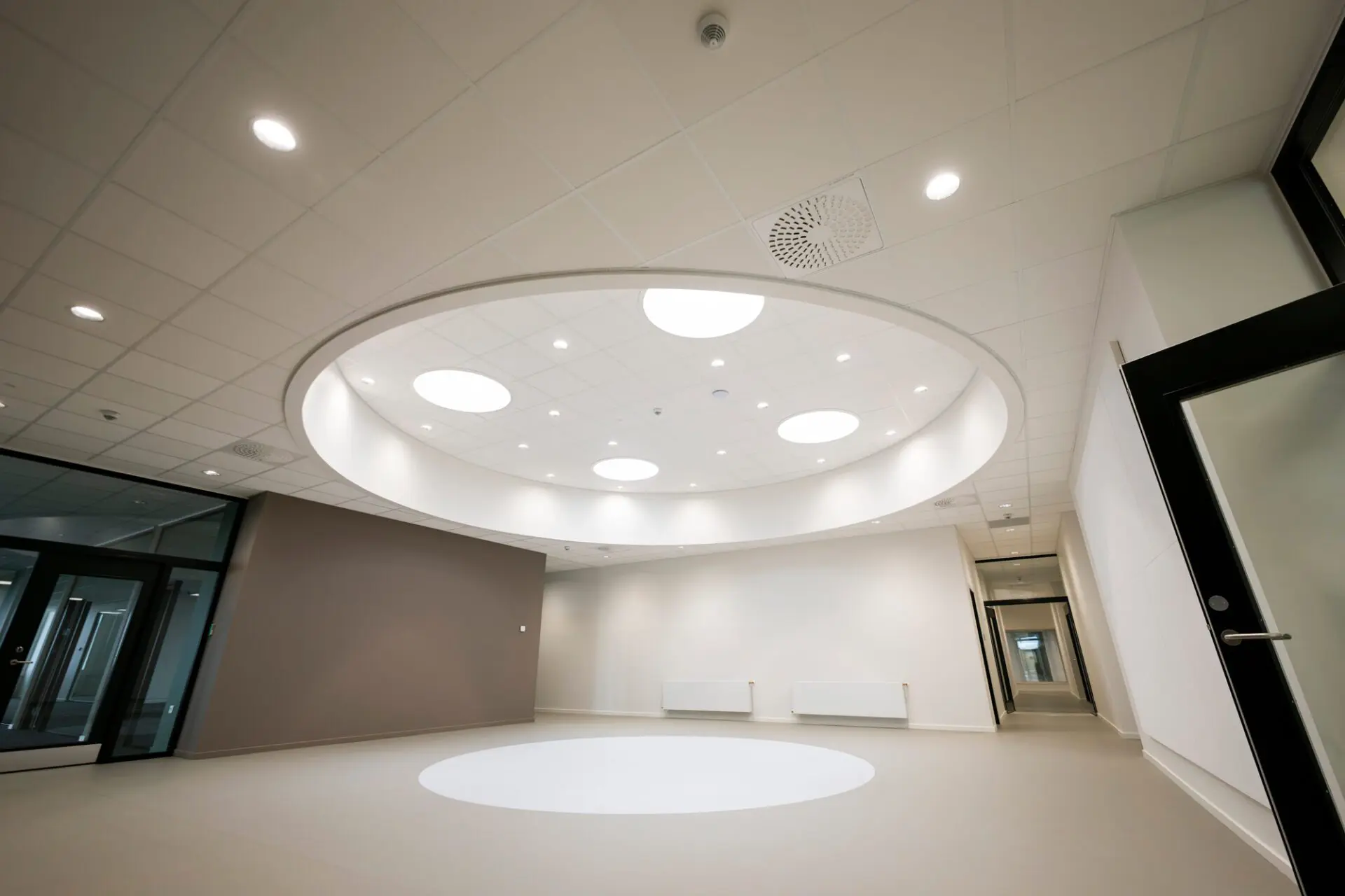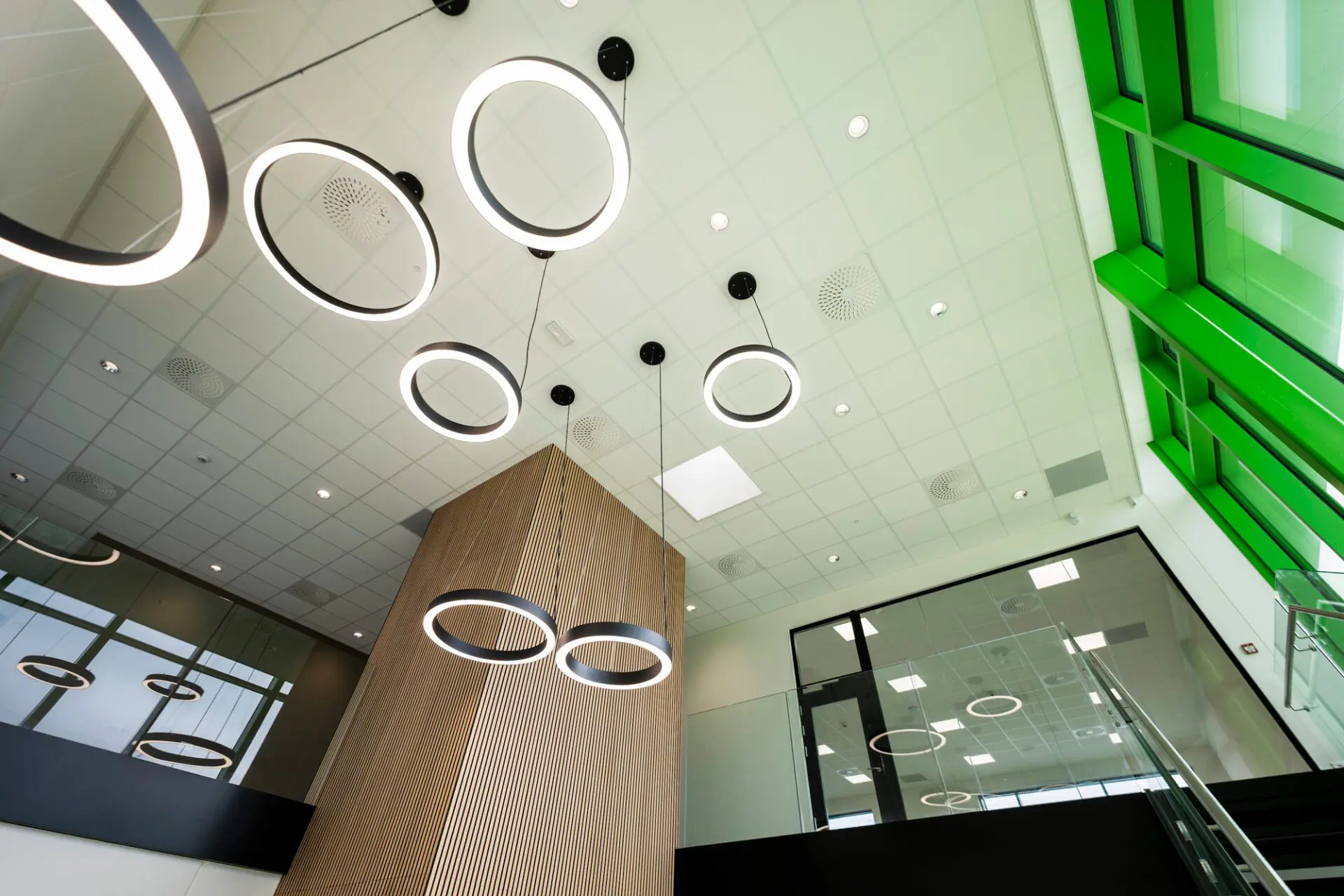 I Teamtronic har vi leveret en grundbelysningsløsning, der er indtænkt til helt grundlæggende at kunne integreres i loftsystemerne, understøtte arbejdsmiljøernes funktioner og give det rigtige arkitektoniske udtryk. Armaturerne rammer dermed en god balance mellem funktionalitet, holdbarhed og æstetisk udtryk.