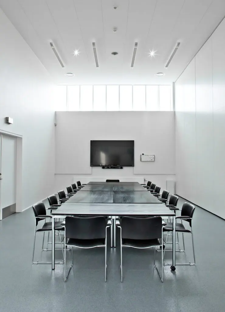 Fælles fokus på agendaen: Konference-og mødelokaler bruges til mange forskellige arbejdssituationer såsom præsentationer, notatskrivning, brainstorming, og derfor er fleksibel belysning afgørende for arbejdsgangen i lokalet. Fleksibiliteten kan opnås ved styring af lysniveauet, hvor dæmpning og justering af lyset er muligt direkte i lokalet.