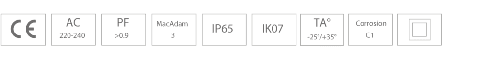 LED driver forventet levetid 100.000 timer. Armaturets certificering er under CIE EN 60598 1-2 og herunder EN550 15/EMC.