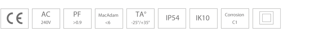 LED driver forventet levetid > 70.000 timer. Armaturet certificering er under CIE EN 60598 1-2 & her under EN550 15/EMC.
