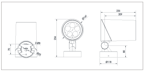 T-HCA Spot fås i to forskellige størrelser – Ø108 x 160 mm og Ø147 x 235 mm. Armaturet er fremstillet i aluminium og har en tæthedskasse på IP66 og er slagfast op til IK08. AC 100-264 / AC 100-305V. Armaturet leveres med forskellige optik såsom 6° / 12° / 20° / 30° / 40° / 60° / 10×70° / 5x 20° beam angle – Option: Honeycomb glass / grill. T-HCA Spot fås som standard i RAL9023 – andre farver kan leveres ved forespørgsel.