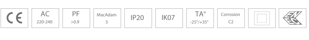 LED driver forventet levetid 100.000 timer. Armaturets certificering er under CIE EN 60598 1-2 og herunder EN550 15/EMC.