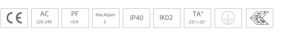 LED driver forventet levetid >70.000 timer. Armaturets certificering er under CIE EN 60598 1-2 og herunder EN550 15/EMC.