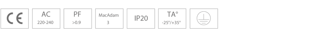 LED driver forventet levetid >100.000 timer. Armaturets certificering er under CIE EN 60598 1-2 og herunder EN550 15/EMC.