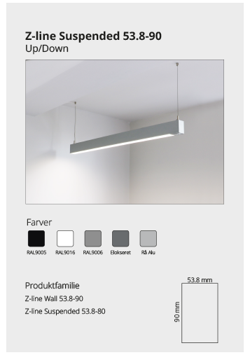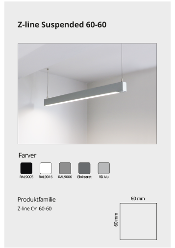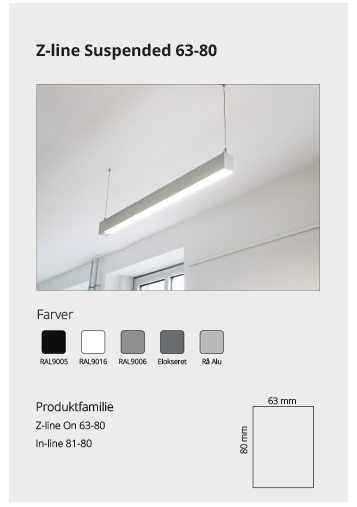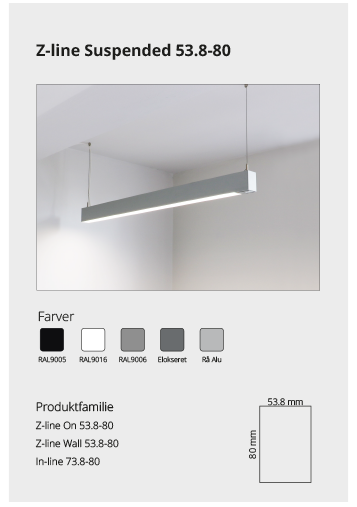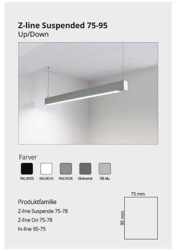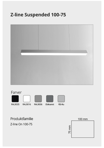 Z-line Suspended er en del af vores lineære profilserie, der kan anvendes til alle loftsystemer, som findes på markedet. Se mere her Se mere her Se mere her Se mere her Se mere her På forespørgsel Se mere her